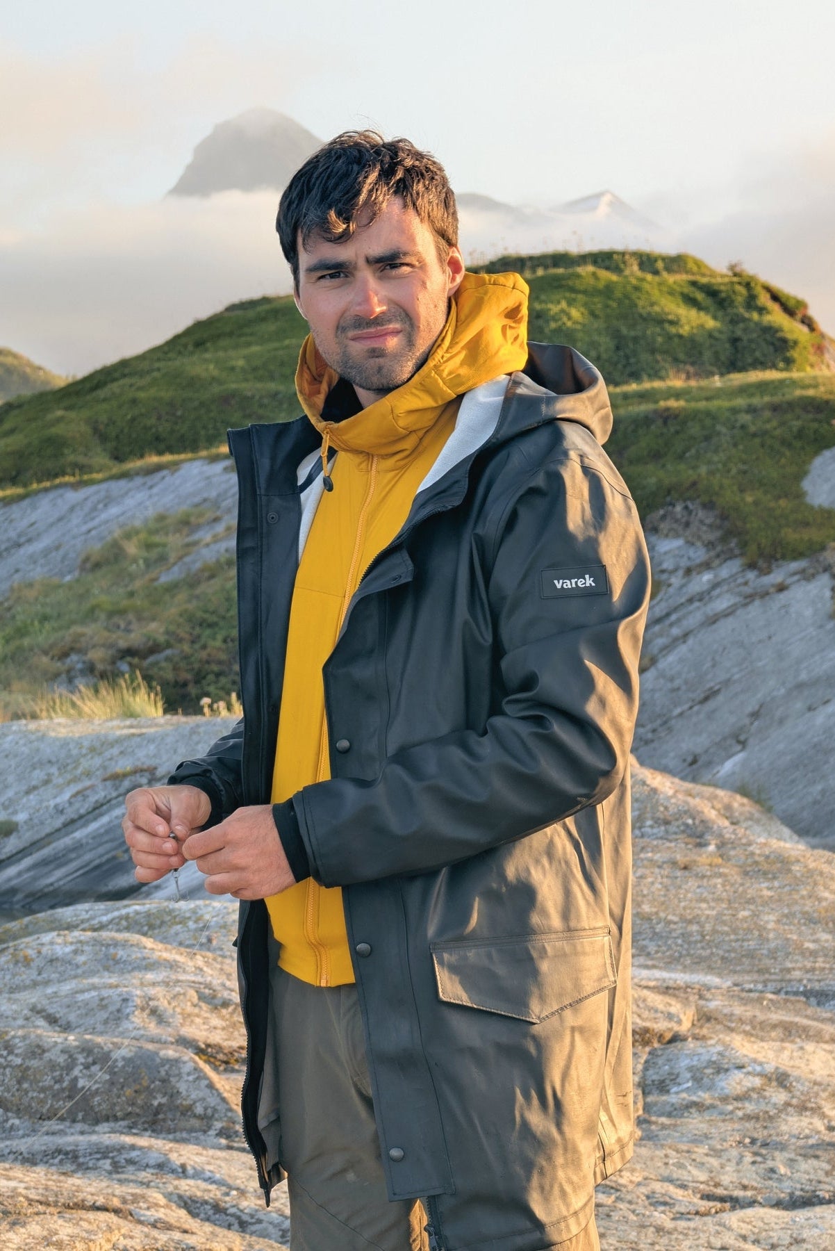 Le ciré Varek est un vêtement unisexe et proposé dans une large gamme de couleurs inspirées de l'océan. Pourquoi un ciré marin doit-il être jaune alors qu'il peut être 'Black Abysses", "Coral reef", "Seaweed green" ou encore "Beach sand"?